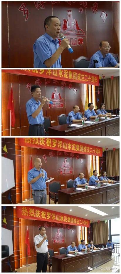 會(huì)議由行政副總裁李麗華主持,吳國強(qiáng)董事長(zhǎng)、謝偉松常務(wù)副總裁及集團(tuán)下屬水泥廠、混凝土攪拌站共7位總經(jīng)理作了二十周年致辭。
